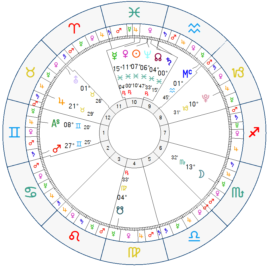 En estos días estamos viviendo una conjunción exacta de Saturno con el planeta lento Neptuno. En astrología mundial, estas conjunciones de planetas lentos son muy significativas. Se repiten aproximadamente cada 36 años: la última conjunción de Saturno y Neptuno tuvo lugar en 1989, cuando cayó el muro de Berlín y se disolvió el Pacto de Varsovia. Esta conjunción fue especialmente importante porque marcó el final de un gran ciclo de Urano y Neptuno. El nuevo ciclo de Urano-Neptuno que vino a continuación comenzó en 1993 con una conjunción a 27° de Sagitario (sideral). Entre otras cosas, marcó el comienzo de la revolución digital.
